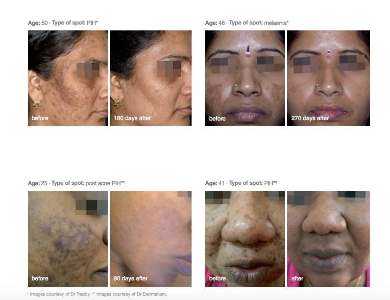 The homecare process is crucial in preventing excessive melanin production by melanocytes. Consistency is key; irregularity in application may lead to the return of hyperpigmentation. Visible results can be observed in as little as two weeks, with peak improvements typically seen around the 60-day mark.