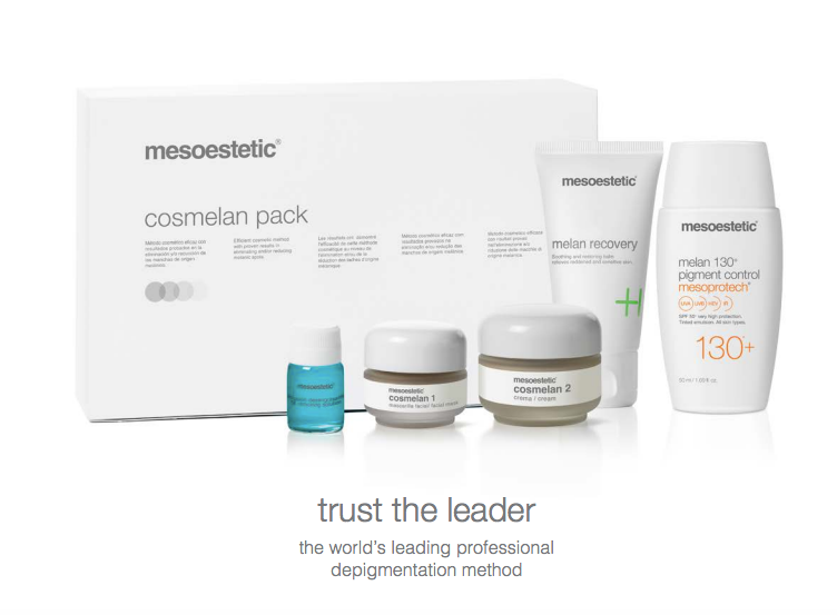 Recommended aftercare includes Mesoestetic ultimate W+ foam, Melan recovery, Melan 130+, and Cosmelan 2. These products work to minimise irritation, peeling, and the likelihood of adverse reactions.
